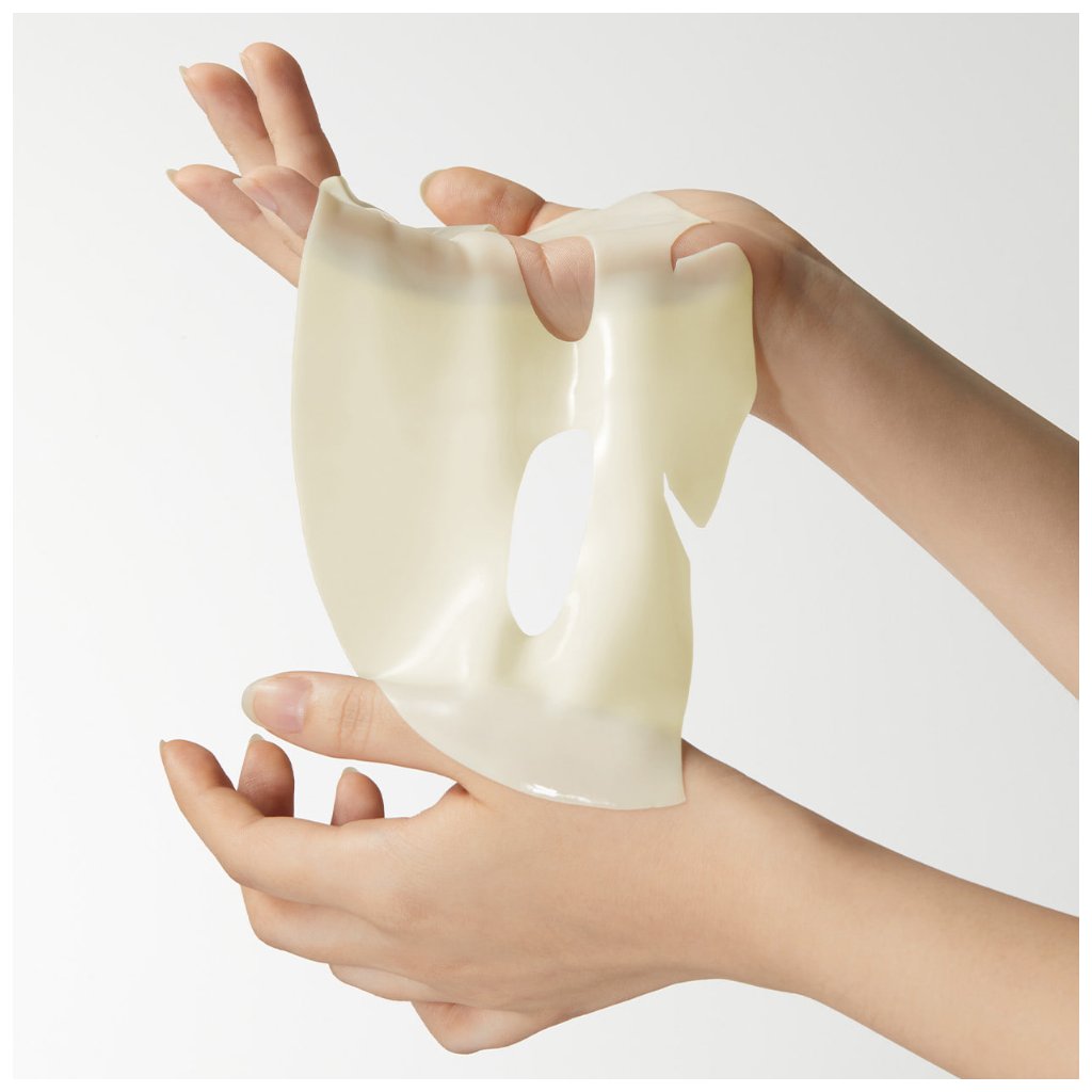 Po vyčistení pleti naneste toner. Odstráňte ochrannú fóliu z masky a priložte ju na tvár podľa otvorov na oči a ústa. Masku nechajte pôsobiť, kým sa nestane priehľadnou (približne 1–3 hodiny). Následne ju jemne odstráňte a zvyšnú esenciu vklepte do pleti.