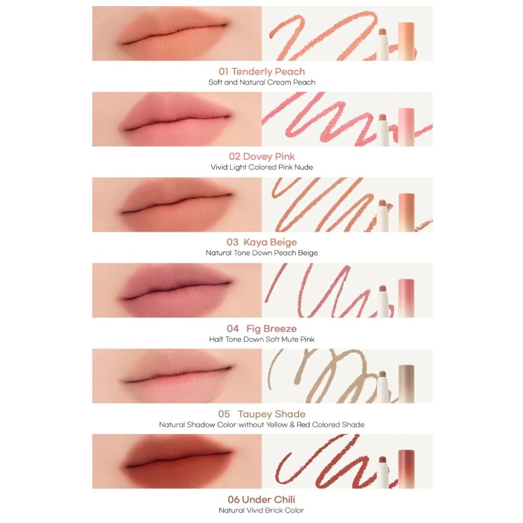 Matná kontúrovacia ceruzka na pery, ktorá prirodzene zvýrazní tvar pier, precízne definuje obrys a dodá im plnší, upravený vzhľad. Vďaka hladkej textúre sa ľahko nanáša bez ťahania a zvládnete ju aplikovať rýchlo a pohodlne. Ideálna hrúbka hrotu umožňuje maximálnu kontrolu – vytvoríte s ňou čisté línie aj jemne rozmazané kontúry podľa želaného efektu. Ceruzka drží na perách bez rozpíjania, takže výsledok zostane dlhšie svieži a upravený. Ceruzka má v sebe zabudovanú kefku pre jednoduché rozmazanie a prirodzený prechod farby.