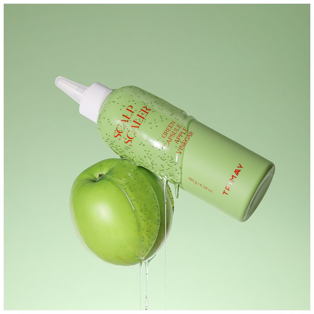 TRIMAY Kapsulový peeling na pokožku hlavy s jablčným octom a čajovníkom - Green Capsule Apple Vinegar Scalp Scaler - 180 g